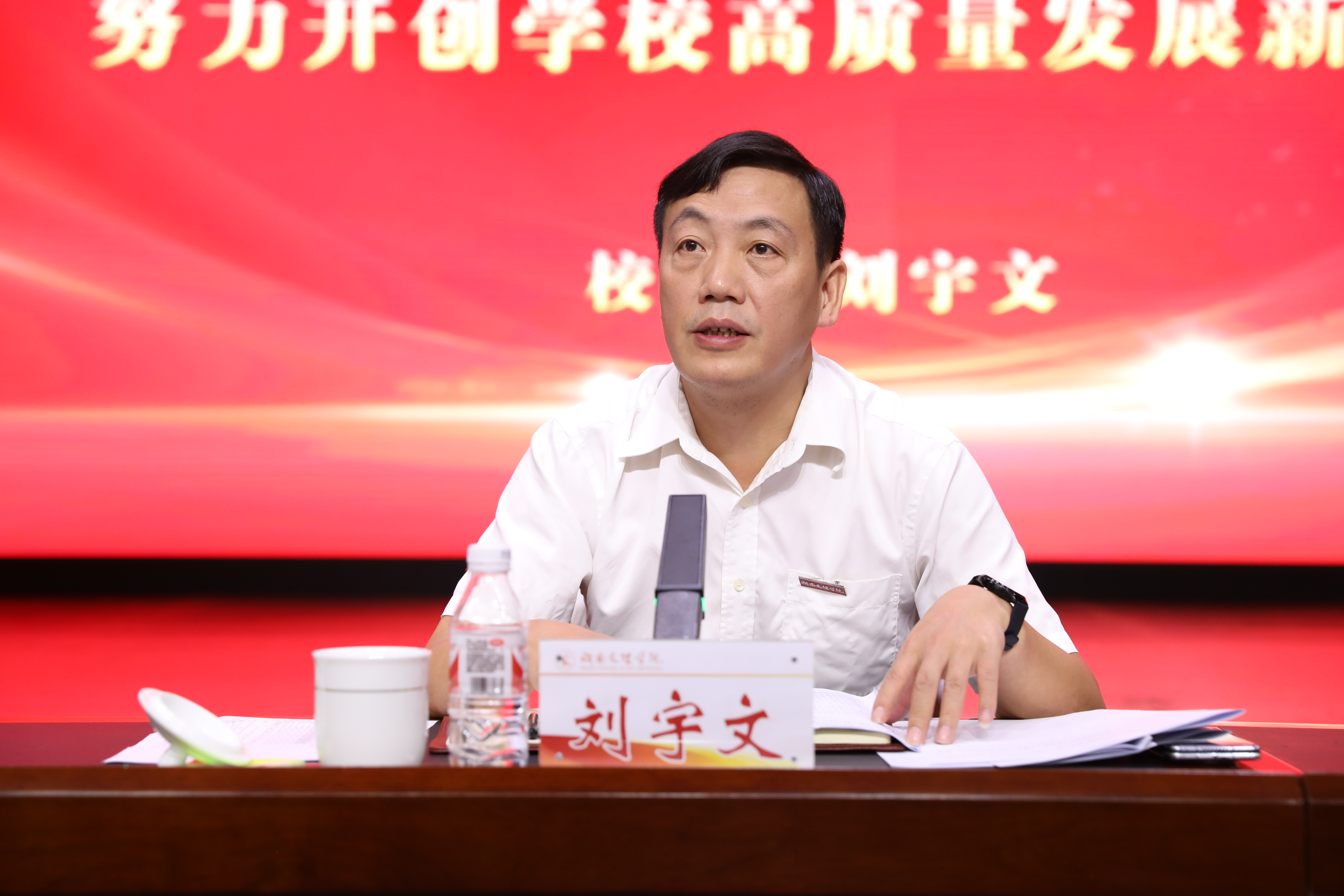在新学期开学之际,刘宇文希望大家以更加饱满的热情,迎接接下来的挑战,共谋发展新篇章。他向全校教职员工提出了三点工作要求:一是迅速进入工作状态,尽快收心归位。希望大家做好迎接新学期新挑战的准备,以积极的心态勇敢迎接工作中的困难和挑战。积极彰显文理担当,为学校培养应用型、创新型高素质人才,产出高水平科技成果,实现高质量发展目标开辟广袤战场。希望全校上下一心,以实干兴校为己任,共绘高质量发展蓝图。